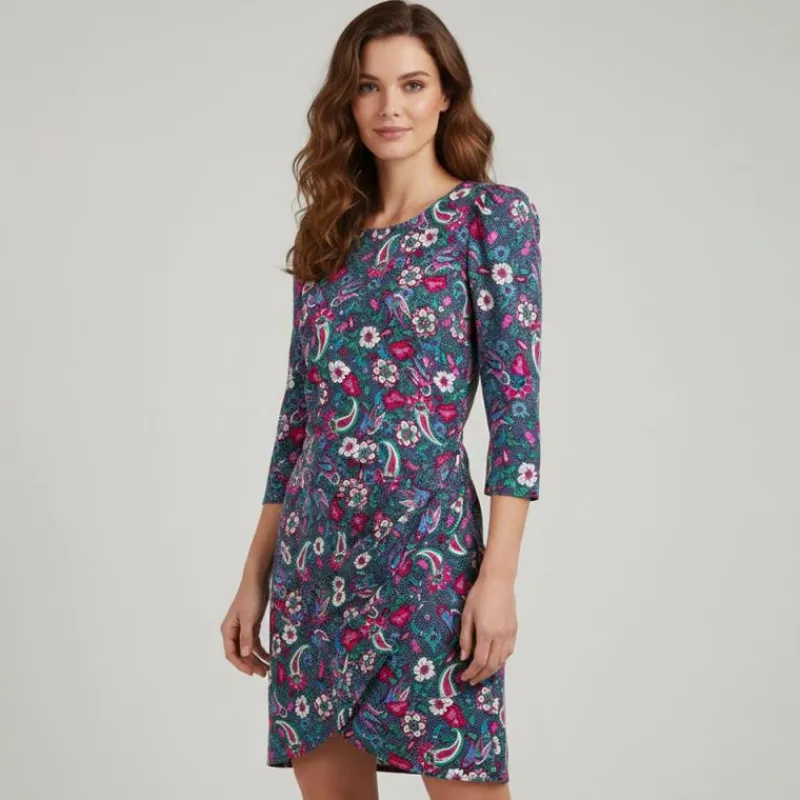 vous propose cette Robe imprimée à fleurs col rond pour femme de la marque LA PETITE ETOILE à prix dégriffé.