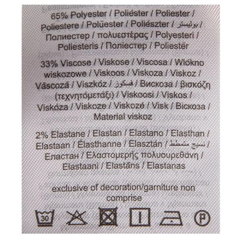 - 65% polyester / 33% viscose / 2% élasthanne