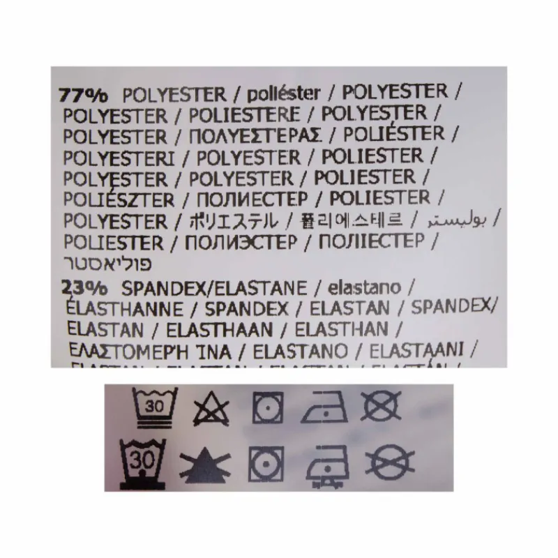 - 77% polyester, 23% élasthanne