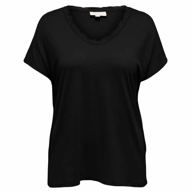 vous propose ce tee shirt manches courtes col rond dentelle uni pour femme de la marque ONLY CARMAKOMA à prix dégriffé.