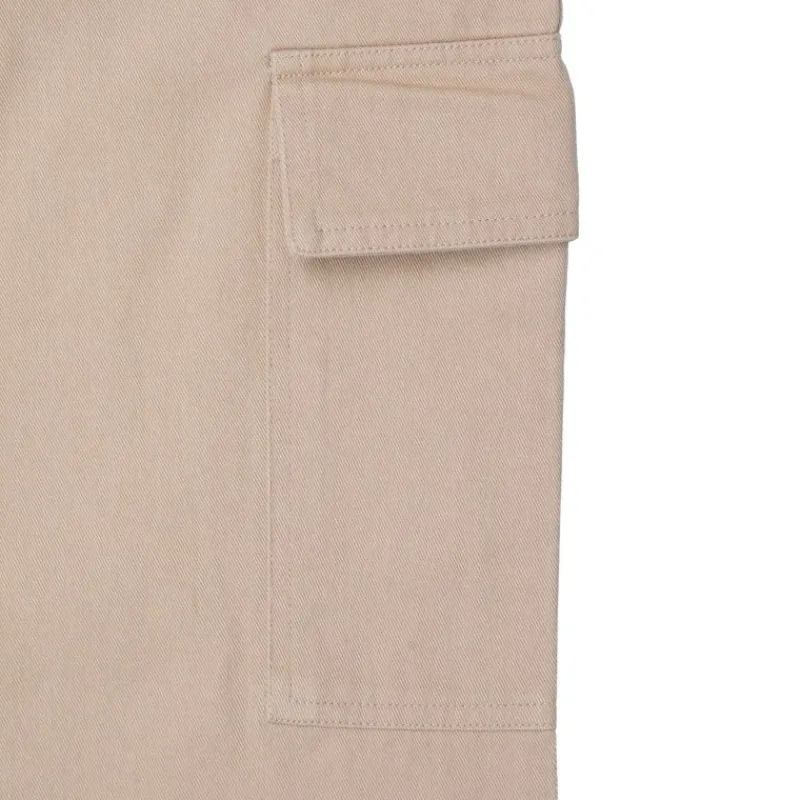 - Deux poches latérales insérées à l’avant et deux grandes poches plaquées à soufflet de type cargo sur les cuisses.