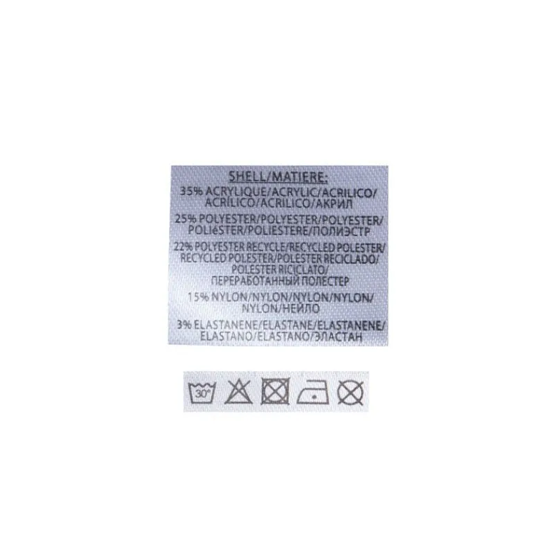 - 35% Acrylique, 25% Polyester, 22% Polyester recyclé, 15% Nylon, 3% Élasthanne