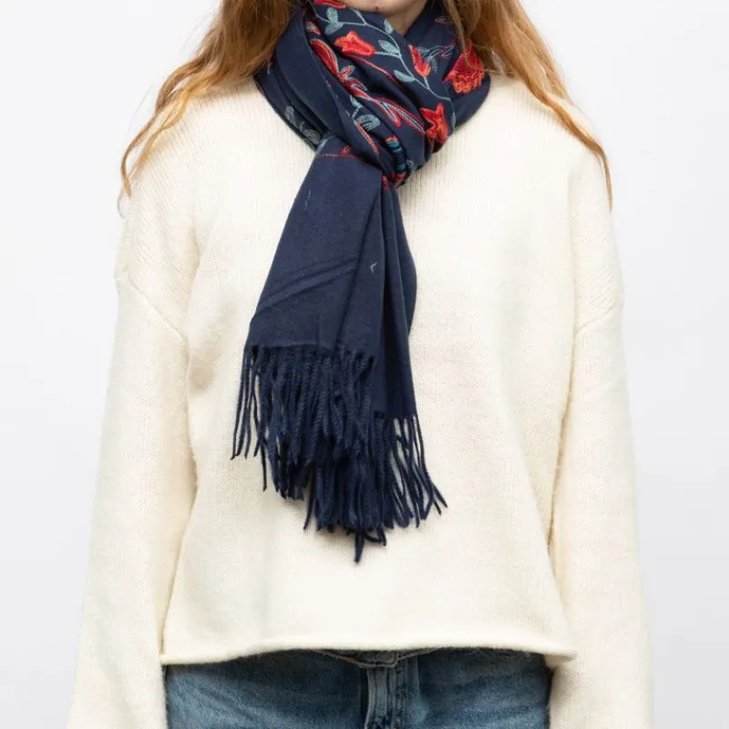 Sale Echarpe broderie imprimé fleurs 70x185cm Femme Femme Écharpe, Foulard